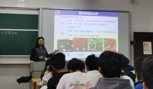 课堂上,李金燕博士以“基因克隆技术”为核心,首先从与现实生活紧密相连的科技突破切入,系统介绍了基因克隆技术在新冠疫苗研发、转基因作物培育及疾病模型动物构建等医药、动植物领域的广泛应用,迅速激发了学生的求知兴趣。随后,李老师条分缕析地讲解了基因克隆技术的完整操作流程,从获取目的基因、构建载体,到导入受体细胞及最终的表达检测,将复杂的技术原理转化为清晰的知识脉络。在整个教学过程中,她不仅注重知识的传授,更强调该技术在精准育种与药物研发中的重大价值,有效实现了知识学习、能力培养与价值引领的有机统一。