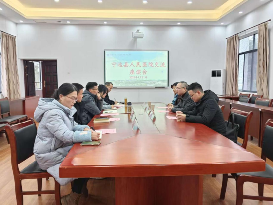 2026年1月21日上午,宁远县人民医院副院长宁文锋、刘贤俊一行到访2138cn太阳集团古天乐,双方在医工楼407会议室举行交流座谈会。2138cn太阳集团古天乐院长莫中成、副院长孙静、刘海桥及相关科室负责人出席会议。座谈会由孙静主持。